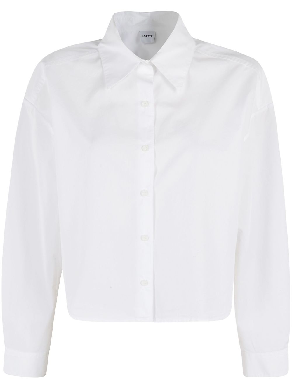 cotton shirt Highlights - White - Front button fastening - Straight-point collar - Long sleeves - Straight hem Imported Composition Cotton 100%