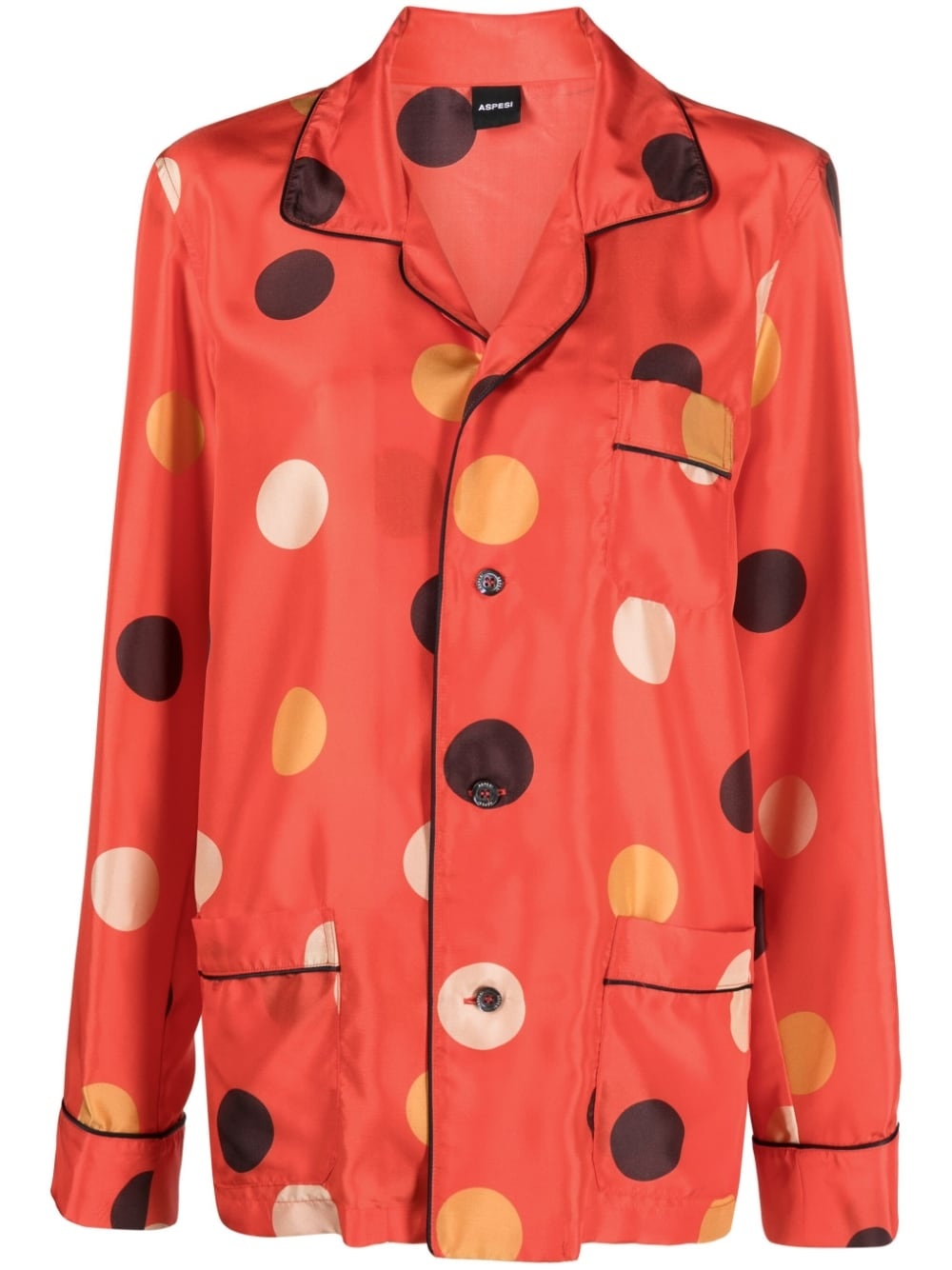 dot-print silk shirt Highlights - Red/multicolour - Silk - Bold polka dot print - Camp collar - Front button fastening - Three front patch pockets - Long sleeves - Straight hem Made in Italy Composition Silk 100% SIZE & FIT Model measurements Height 5 ft 10 in(1.77 m) Bust/Chest 32.67 in(83 cm) Hips 35.43 in(90 cm) Waist 23.62 in(60 cm) FittingInformation Designed to be unstructured, offering a loose fit throughout Made from a lightweight non-stretch fabric This piece fits true to size – take your usual size Washing instructions Dry Clean Only