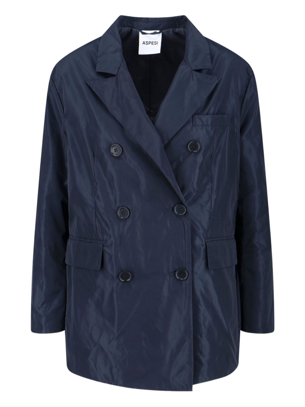 double-breasted blazer Highlights - Navy blue - Double-breasted fastening - Technical fabric - Button closure - Flap pockets Made in Italy Composition Polyester 100% Washing instructions Read Manufacturer Guidelines