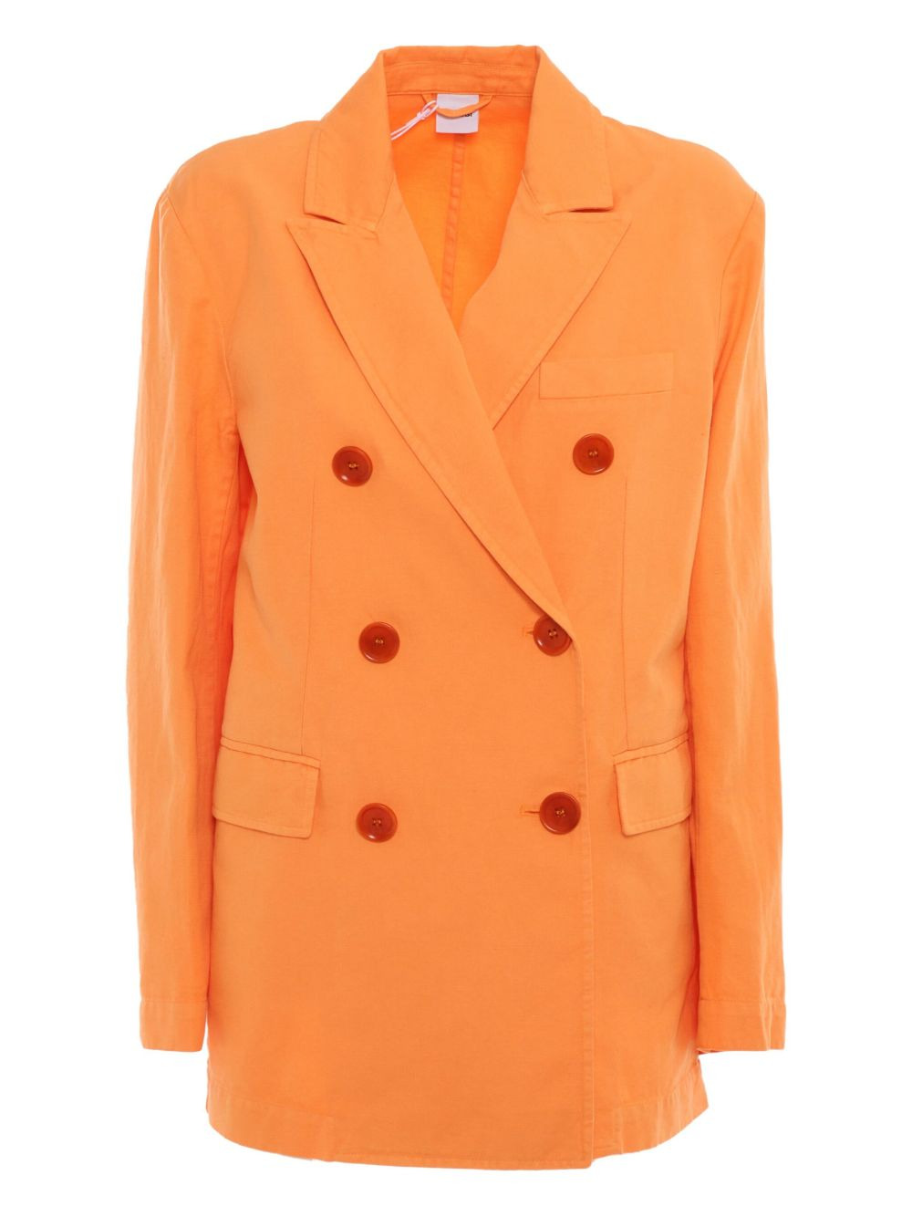 double-breasted blazer Highlights - Orange - Double-breasted fastening - Four buttons - Notched lapels - Long sleeves - Flap pockets Made in Italy Composition Cotton 58%, Linen/Flax 42% Washing instructions Read Manufacturer Guidelines