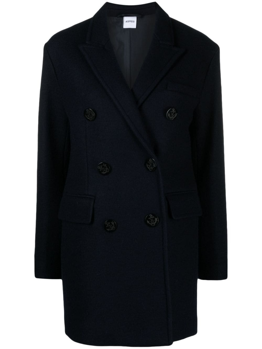 double-breasted wool coat Highlights - Navy blue - Wool - Brushed finish - Peak lapels - Logo-debossed buttons - Double-breasted button fastening - Drop shoulder - Long sleeves - Buttoned cuffs - Chest welt pocket - Two front flap pockets - Central rear vent - Straight hem - Satin lining Made in Italy Composition Outer: Wool 100% Lining: Polyamide 100% SIZE & FIT Model measurements Height 5 ft 10 in(1.78 m) Bust/Chest 33.07 in(84 cm) Hips 36.61 in(93 cm) Waist 24.8 in(63 cm) FittingInformation Designed to be unstructured, offering a loose fit throughout The dart stitching adds structure and a closer fit in the torso of this piece Made from a midweight non-stretch fabric This piece fits true to size – take your usual size Washing instructions Dry Clean Only