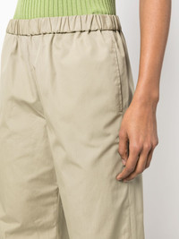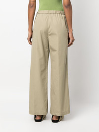elastic-waist wide-leg trousers Highlights - Light olive green - Cotton - Poplin texture - Elasticated waistband - Wide leg - Two side slit pockets - Pull-on style Imported Composition Cotton 100% SIZE & FIT Model measurements Height 5 ft 11 in(1.8 m) Bust/Chest 31.49 in(80 cm) Hips 35.82 in(91 cm) Waist 24.8 in(63 cm) FittingInformation Designed with a wide-leg cut, these trousers allow for a close fit at the waist and offer a loose and roomy fit over the leg The elasticated waist allows for a comfortable fit Made from a midweight non-stretch fabric Washing instructions Machine Wash