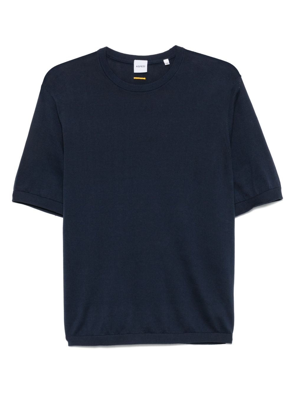 fine-knit T-shirt Highlights - Navy blue - Ribbed trim - Crew neck - Short sleeves Made in Italy Composition Cotton 100%