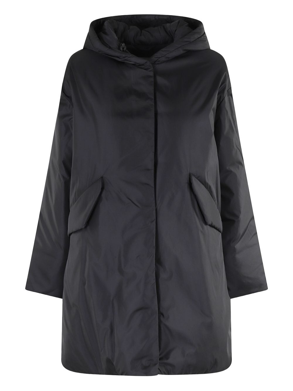 hooded padded coat Highlights - Black - Hooded neckline - Patch pockets - Straight hem - Concealed front fastening Imported Composition Nylon 100% Washing instructions Read Manufacturer Guidelines