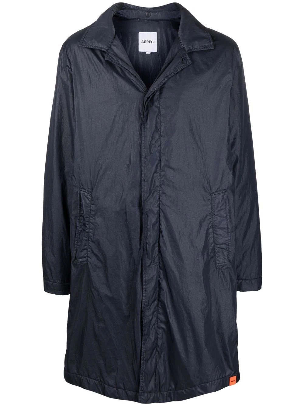 hooded parka coat navy blue classic hood concealed front fastening long sleeves two front welt pockets Imported Composition Outer: Polyamide 100% Lining: Polyester 100%, Polyamide 100% SIZE & FIT Model measurements Height 6 ft 2 in(1.89 m) Bust/Chest 36.22 in(92 cm) Hips 35.82 in(91 cm) Waist 28.74 in(73 cm)