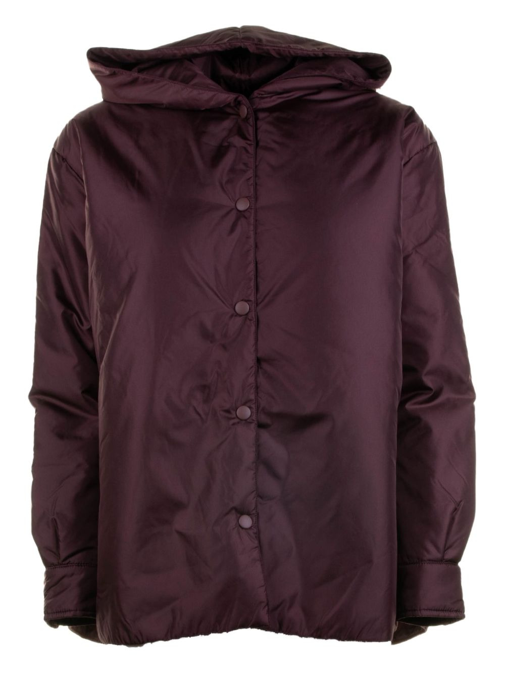 hooded press-stud jacket Highlights - Purple - Hooded neckline - Front press-stud fastening - Long sleeves - Drop shoulder Imported Composition Fabric 100% Washing instructions Read Manufacturer Guidelines