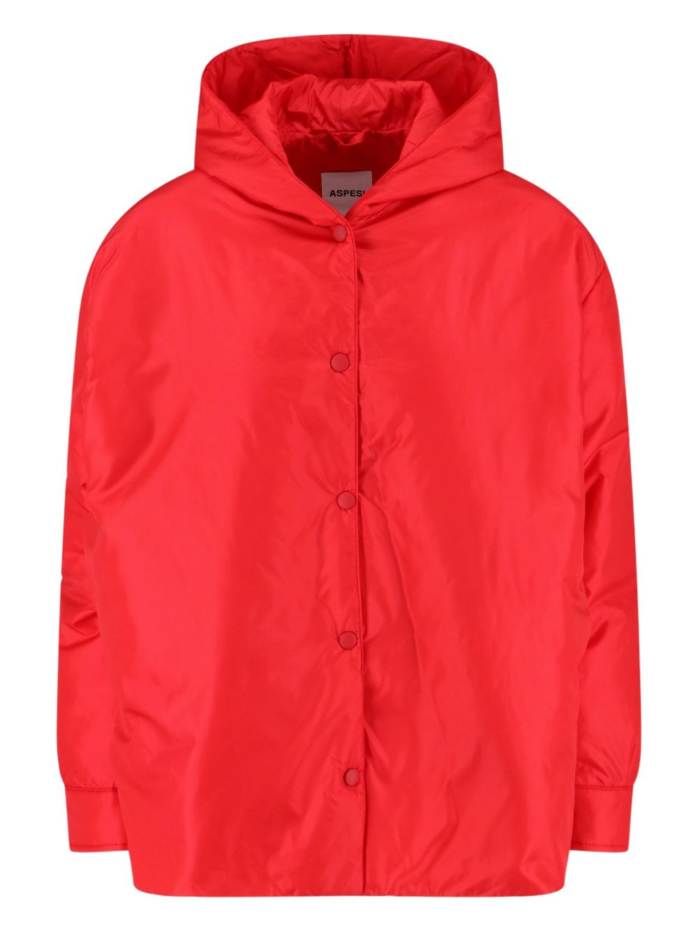 hooded snap-button coat Highlights - Red - Snap-button fastening - Hooded neckline - Side seam pockets Imported Composition Polyamide 100% Washing instructions Read Manufacturer Guidelines