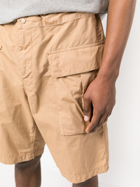 knee-length cargo shorts Highlights - Beige - Cotton - Pressed crease - Concealed fly and button fastening - Rear elasticated waistband - Two side cargo pockets - Two rear patch pockets - Straight hem - Straight leg Imported Composition Cotton 100% SIZE & FIT Model measurements Height 6 ft 1 in(1.85 m) Bust/Chest 38.58 in(98 cm) Hips 37 in(94 cm) Waist 30.31 in(77 cm) FittingInformation Designed for a straight-leg fit, offering an unrestricted and comfortable fit over the leg Adjust this piece’s waistband to your preference using the drawstring Made from a lightweight non-stretch fabric This piece fits true to size – take your usual size Washing instructions Machine Wash