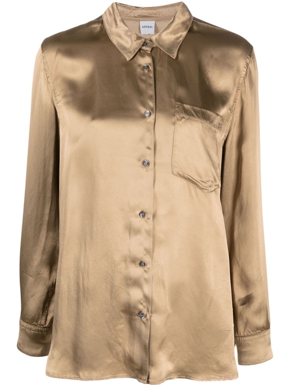 long-sleeve satin-finish shirt Highlights - Light brown - Satin finish - Classic collar - Front button fastening - Long sleeves - Buttoned cuffs - Chest patch pocket - Straight hem Made in Italy Composition Viscose 100% Washing instructions Machine Wash