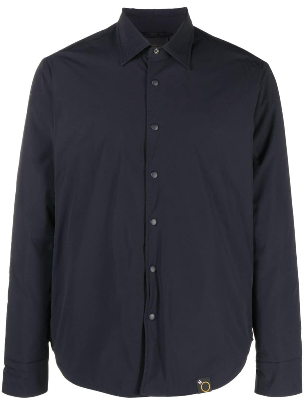 long-sleeved button-up shirt Highlights - Navy blue - Stretch-design - Classic collar - Front button fastening - Long sleeves - Buttoned cuffs - Curved hem Imported Composition Outer: Polyamide 78%, Spandex/Elastane 22% Lining: Polyester 100%, Polyamide 78%, Spandex/Elastane 22% SIZE & FIT Model measurements Height 6 ft 2 in(1.87 m) Bust/Chest 38.18 in(97 cm) Hips 36.61 in(93 cm) Waist 29.13 in(74 cm) FittingInformation Designed for a relaxed fit, this piece allows for comfort and movement when worn Made from a midweight stretch fabric, this piece offers elasticity and flexibility when worn This piece fits true to size – take your usual size Washing instructions Machine Wash