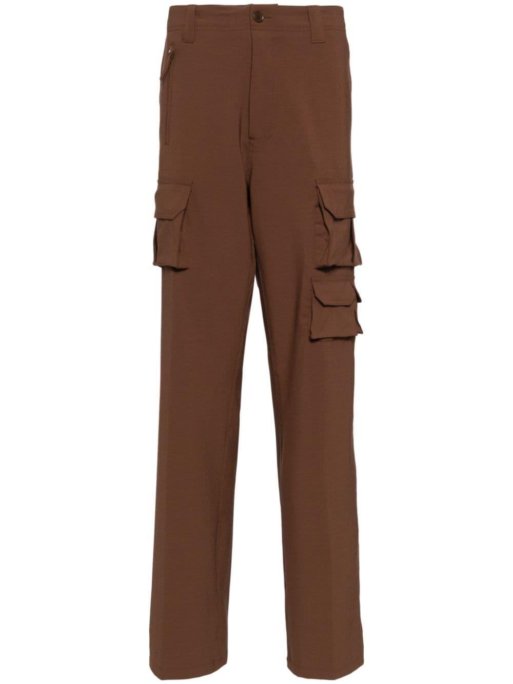 multi-pocket straight leg trousers Highlights - Chocolate brown - Front button and zip fastening - Belt loops - Two side slash pockets - Front zip-fastening pocket - Four front cargo pockets - Rear cargo pocket - Straight leg Made in Italy Composition Polyester 53%, Virgin Wool 43%, Elastane 4% SIZE & FIT Model measurements Height 6 ft 2 in(1.88 m) Bust/Chest 34.25 in(87 cm) Hips 34.64 in(88 cm) Waist 26.77 in(68 cm) FittingInformation Designed for a straight-leg, allowing for an unrestricted and comfortable fit over the leg Made from a midweight stretch fabric, this piece offers elasticity and flexibility when worn
