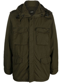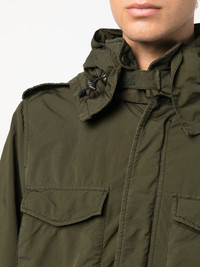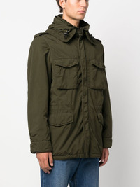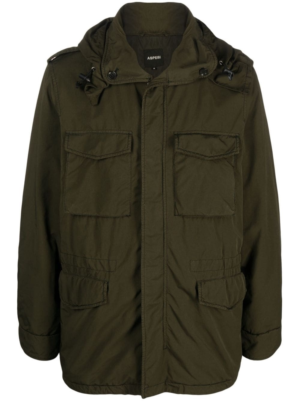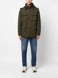 Newcamp military jacket Highlights - Olive green - Pull-out drawstring hood - Front press-stud and zip fastening - Epaulettes - Long sleeves - Press-stud fastening cuffs - Four front flap pockets - Internal drawstring fastening waist - Internal zip-fastening pocket - Internal patch pocket - Drawstring hem Imported Composition Outer: Polyester 70%, Polyamide 30% Lining: Polyester 100% SIZE & FIT Model measurements Height 6 ft 1 in(1.85 m) Bust/Chest 35.43 in(90 cm) Hips 35.82 in(91 cm) Waist 27.55 in(70 cm) Measurement CHEST 47.24 in(120 cm) SLEEVE LENGTH 35.43 in(90 cm) Shoulder Width 18.89 in(48 cm) FittingInformation Designed to be unstructured, offering a loose fit throughout The internal drawstring at the hem allows for fitted preferences Made from a padded non-stretch fabric, giving it no natural elasticity This piece fits true to size – take your usual size Washing instructions Machine Wash