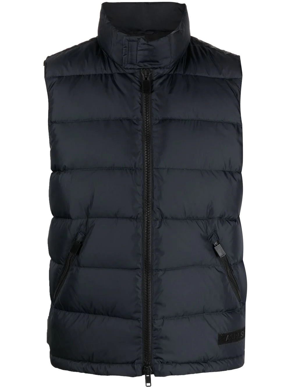 padded down gilet Highlights - Padded down gilet from aspesi featuring navy blue, padded design, logo patch to the front, down-feather filling, front two-way zip fastening, stand-up collar, sleeveless, two side zip-fastening pockets, drawstring hem and straight hem. Imported Composition Lining: Polyamide 100%, Down 80%, Feather 20% Outer: Polyamide 100% SIZE & FIT Model measurements Height 6 ft 2 in(1.87 m) Bust/Chest 36.41 in(92.5 cm) Hips 37 in(94 cm) Waist 29.52 in(75 cm) FittingInformation This piece fits true to size. We recommend you get your regular size Cut for a slim fit Made with a mid-weight non-stretch fabric Washing instructions Machine Wash
