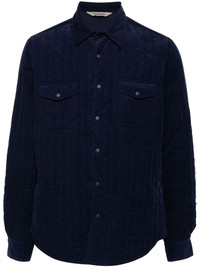 padded velvet shirt jacket Highlights - Navy blue - Cotton blend - Front press-stud fastening - Padded design - Two button-fastening chest pockets - Long sleeves - Press-stud fastening cuffs - Curved hem - Full lining Made in Italy Composition Outer: Cotton 100% Filling: Polyester 100% Lining: Polyester 100% SIZE & FIT Model measurements Height 6 ft 2 in(1.88 m) Bust/Chest 34.25 in(87 cm) Hips 34.64 in(88 cm) Waist 26.77 in(68 cm) FittingInformation Designed for a regular fit, allowing for a comfortably loose fit throughout the body Made from a padded non-stretch fabric, giving it no natural elasticity