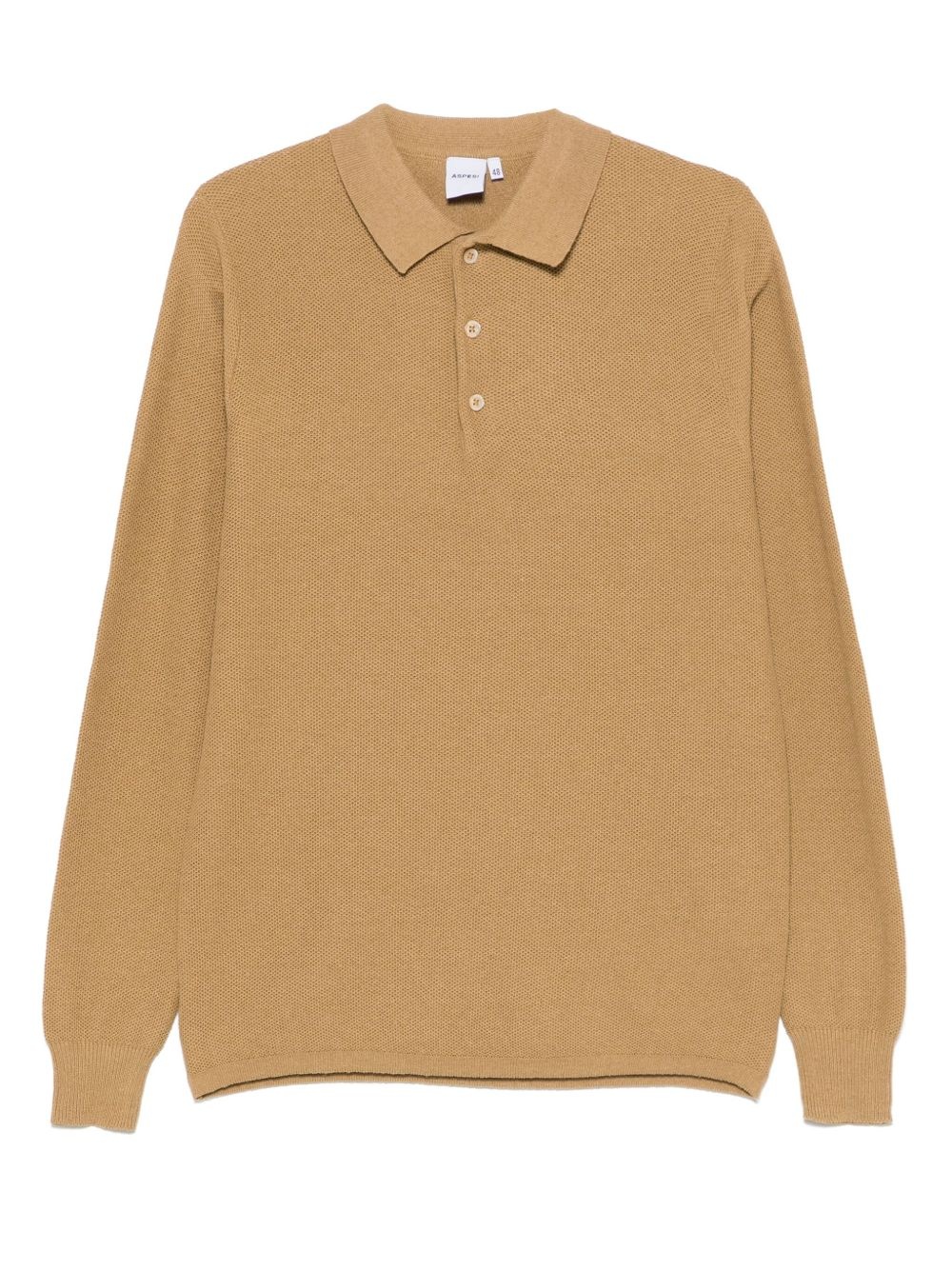 pique-knit polo shirt Highlights - Taupe - Short front button fastening - Ribbed cuffs and hem - Long sleeves Imported Composition Cotton 100%