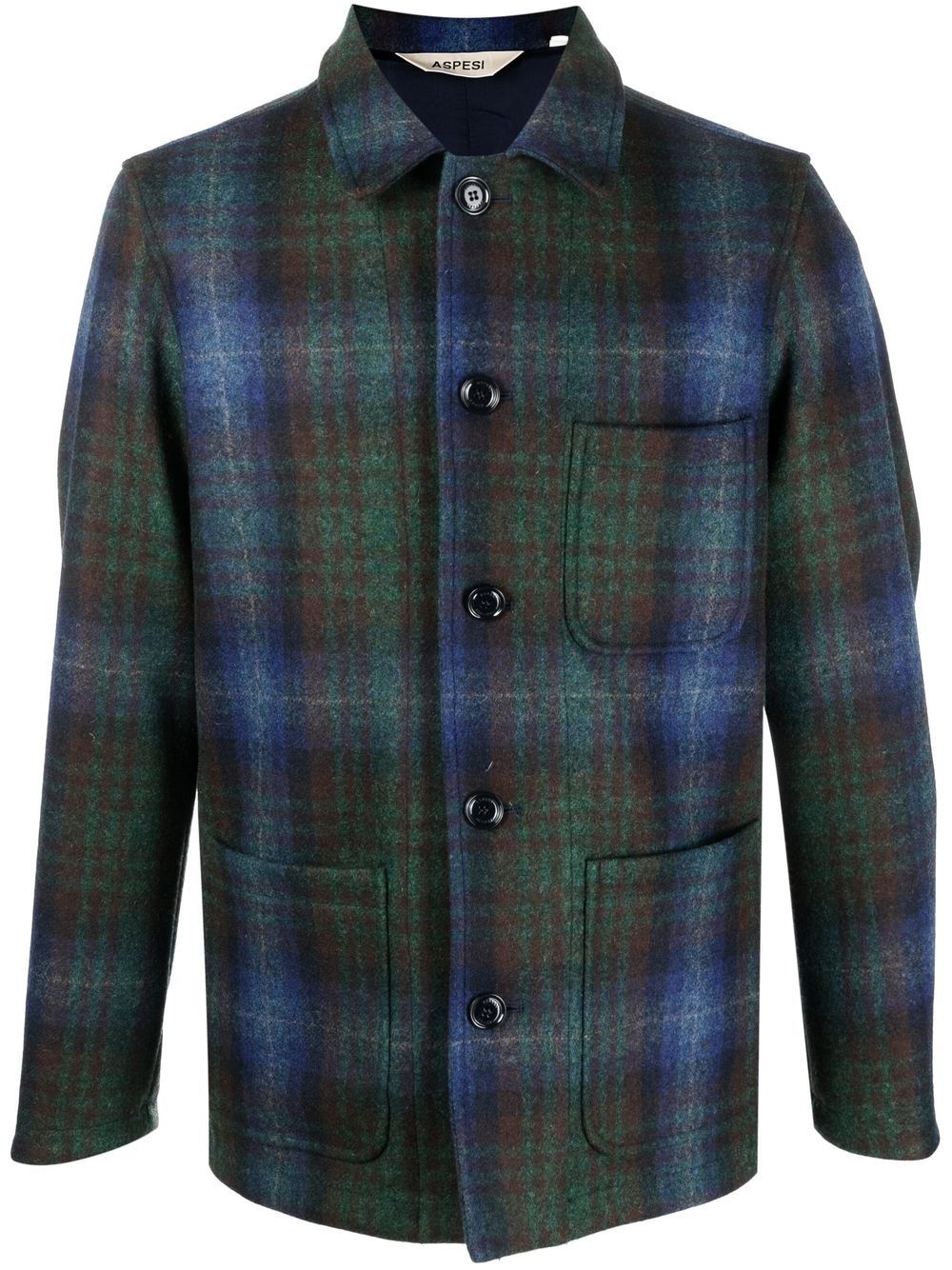 plaid virgin-wool shirt jacket cambridge blue/multicolour virgin wool plaid check pattern notched lapels front button fastening logo patch at the chest long sleeves two front patch pockets Made in Italy Composition Outer: Virgin Wool 100% Lining: Viscose 100% SIZE & FIT Model measurements Height 6 ft 2 in(1.88 m) Bust/Chest 36.61 in(93 cm) Hips 35.82 in(91 cm) Waist 27.95 in(71 cm) FittingInformation This piece fits true to size. We recommend you get your regular size Cut for a slim fit Made with a mid-weight non-stretch fabric Washing instructions Dry Clean Only
