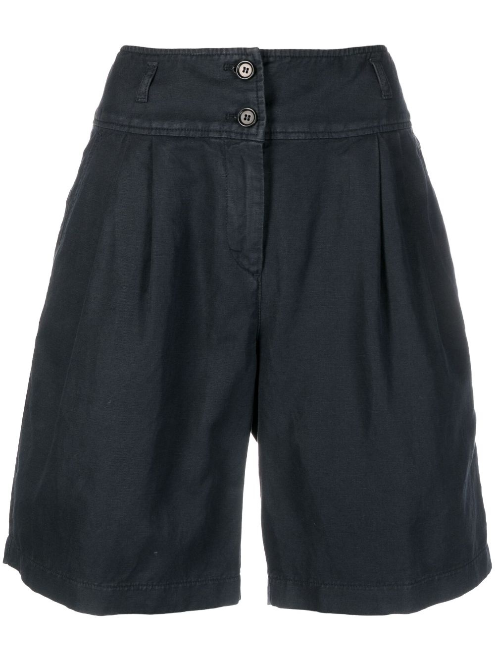 pleat-detail Bermuda shorts Highlights - Navy blue - Cotton-linen blend - Pleat detailing - High waist - Belt loops - Front button and zip fastening - Two side slit pockets - Rear welt pocket - Straight hem - Knee-length Imported Composition Cotton 61%, Linen/Flax 39% SIZE & FIT Model measurements Height 5 ft 11 in(1.8 m) Bust/Chest 31.49 in(80 cm) Hips 35.43 in(90 cm) Waist 24.4 in(62 cm) FittingInformation Designed for a loose fit, offering comfort and movement when worn Made from a midweight non-stretch fabric This piece fits true to size – take your usual size Washing instructions Machine Wash