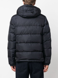 Pocoelastica Re-quilted jacket Highlights - Navy blue - Duck down - Padded design - Logo patch to the side - Classic hood - Front zip fastening - Long sleeves - Two side slit pockets - Straight hem Imported Composition Outer: Polyamide 100% Lining: Polyamide 100%, Duck Down 80%, Feather 20% SIZE & FIT Model measurements Height 6 ft 1 in(1.85 m) Bust/Chest 35.43 in(90 cm) Hips 35.82 in(91 cm) Waist 27.55 in(70 cm) FittingInformation Designed for a slim fit, offering a comfortable fit that sits just away from the body The internal drawstring at the hem allows for fitted preferences Made from a padded non-stretch fabric, giving it no natural elasticity This piece fits true to size – take your usual size Washing instructions Machine Wash