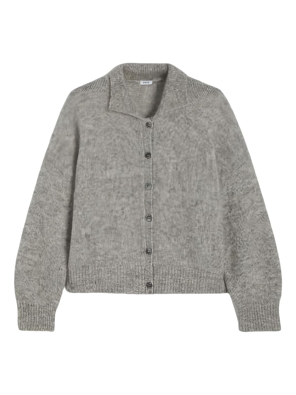polo-collar cardigan Highlights - Grey - Button fastening - Polo collar - Long sleeves - Ribbed hem - Ribbed cuffs Imported Composition Wool 33%, Polyamide 33%, Mohair 32%, Elastane 2% Washing instructions Read Manufacturer Guidelines