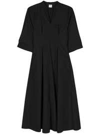 poplin flared maxi dress Highlights - Black - Cotton - Poplin texture - Band collar - V-neck - Concealed side zip fastening - Three-quarter length raglan sleeves - Fitted waistline - Box-pleat detail - Flared skirt - Curved hem - Long length Made in Italy Composition Cotton 100%
