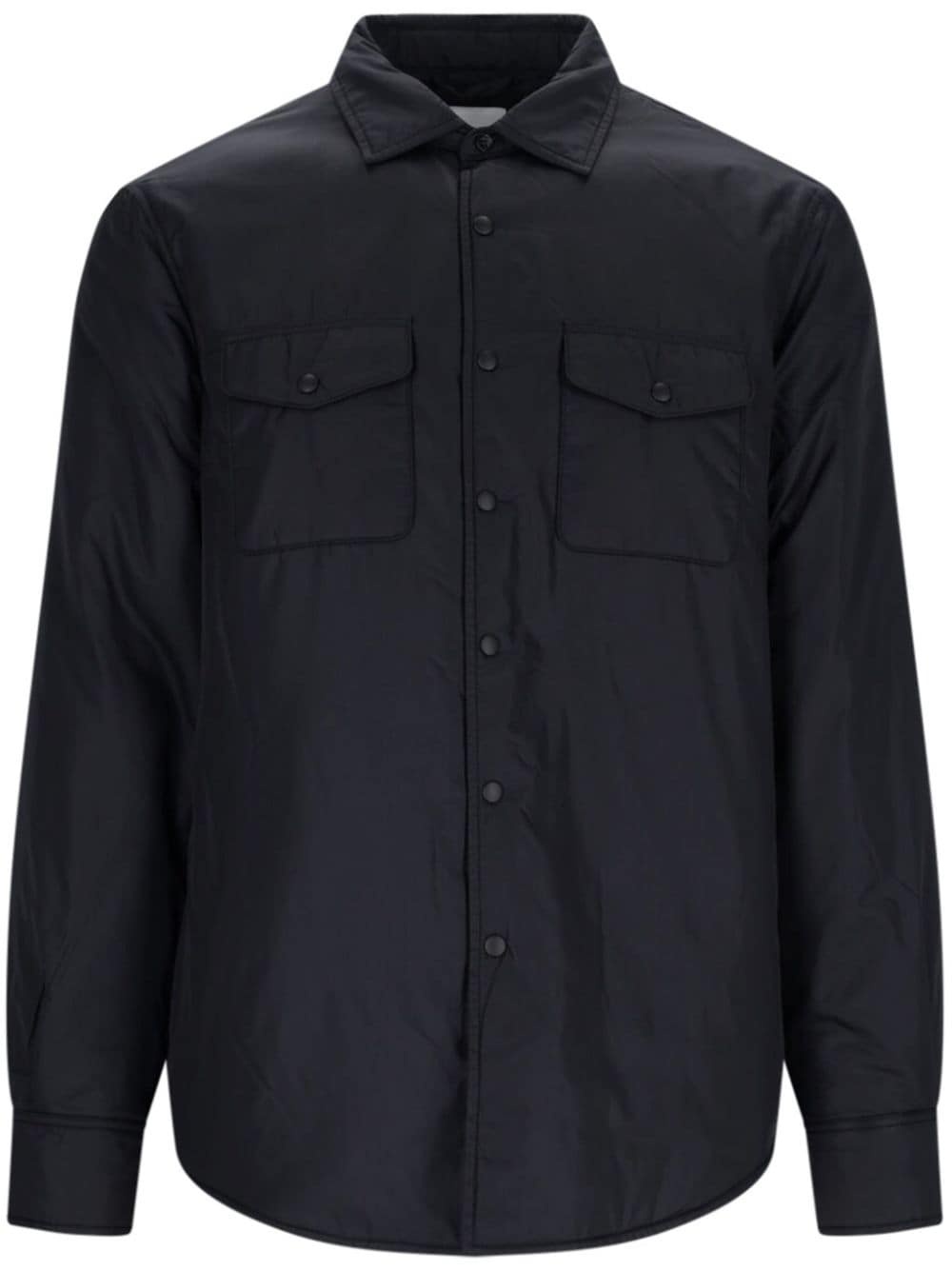 press-stud fastening shirt Highlights - Black - Press-stud fastening - Classic collar - Long sleeves - Two chest flap pockets - Side slit pocket - Mini logo tag - Press-stud fastening cuffs - Curved hem Made in Italy Composition Nylon 100% SIZE & FIT FittingInformation Designed for a regular fit, allowing for a comfortably loose fit throughout the body Made from a padded non-stretch fabric, giving it no natural elasticity