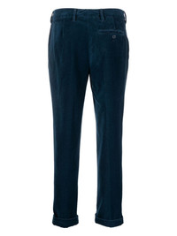 pressed-crease slim-cut trousers Highlights - Navy blue - Cotton - Pressed crease - Belt loops - Front button and zip fastening - Slim cut - Two side slit pockets - Rear welt pocket - Turn-up hem Imported Composition Cotton 100% Washing instructions Machine Wash