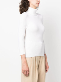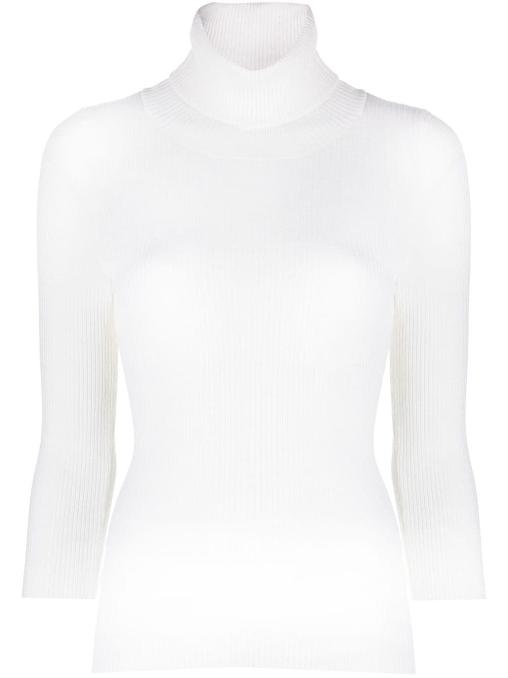 ribbed-knit roll-neck knitted top white stretch-wool ribbed knit roll neck long sleeves straight hem Imported Composition Wool 97%, Elastane 3% SIZE & FIT Model measurements Height 5 ft 9 in(1.76 m) Bust/Chest 33.07 in(84 cm) Hips 34.64 in(88 cm) Waist 25.59 in(65 cm) FittingInformation Designed for a close fit throughout Made with a midweight knit, this piece offers some stretch This piece fits true to size – take your usual size Washing instructions Hand Wash