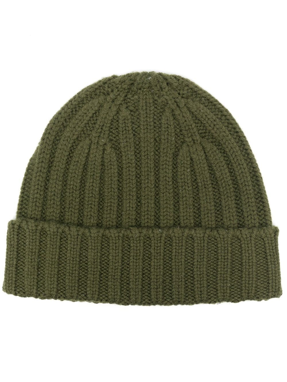 ribbed virgin wool beanie moss green virgin wool chunky ribbed knit turn-up hem straight hem Imported Composition Virgin Wool 100%