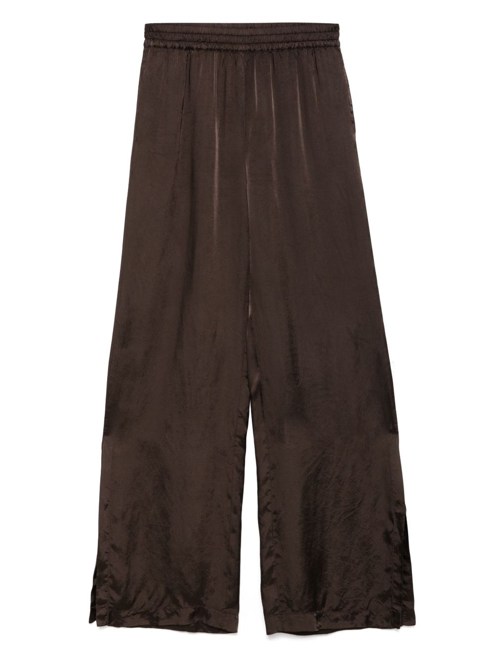 satin trousers Highlights - Earth brown - Elasticated waistband - Two side inset pockets Made in Italy Composition Viscose 100% SIZE & FIT Model measurements Height 5 ft 10 in(1.78 m) Bust/Chest 33.46 in(85 cm) Hips 36.22 in(92 cm) Waist 23.22 in(59 cm) FittingInformation Designed with a wide-leg cut, these trousers allow for a close fit at the waist and offer a loose and roomy fit over the leg The elasticated waist allows for a comfortable fit Made from a lightweight non-stretch fabric