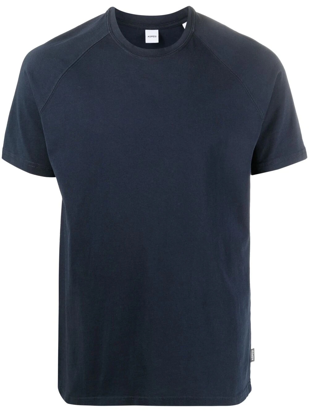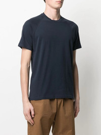 short-sleeved cotton T-shirt navy blue cotton crew neck short sleeves straight hem Made in Italy Composition Cotton 100% SIZE & FIT Model measurements Height 6 ft 1 in(1.86 m) Bust/Chest 38.58 in(98 cm) Hips 38.18 in(97 cm) Waist 27.95 in(71 cm) FittingInformation This piece fits true to size. We recommend you get your regular size Cut for a relaxed fit Made with a mid-weight fabric Washing instructions Machine Wash