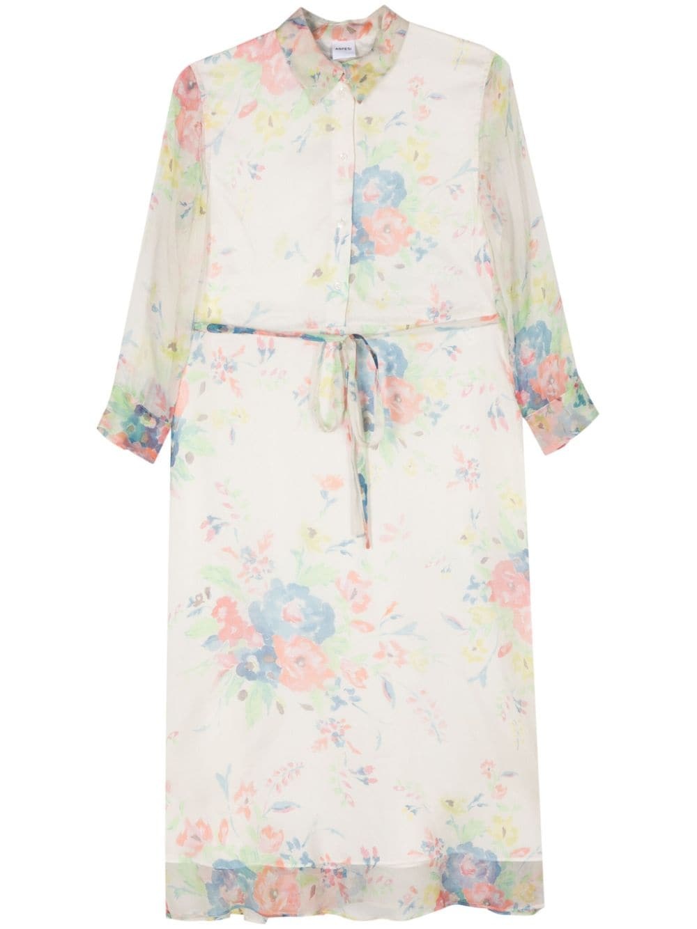 silk floral midi dress Highlights - Light beige/multicolour - Silk - All-over floral print - Georgette crepe - Classic collar - Long sleeves - Buttoned cuffs - Strap detailing - Internal logo tag - Full lining - Mid-length - Straight hem - Front button placket Made in Italy Composition Outer: Silk 100% Lining: Viscose 100%