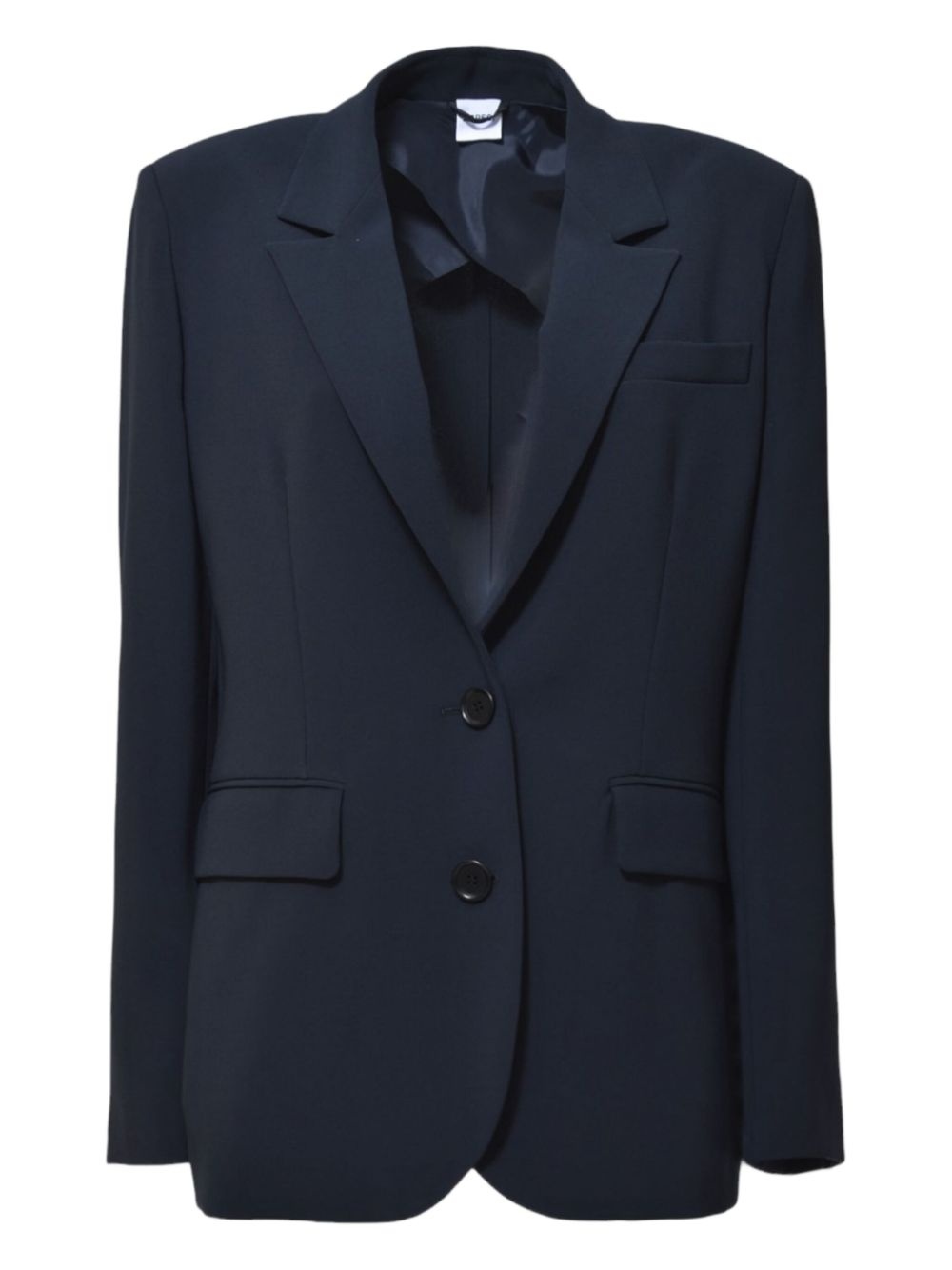 single-breasted blazer Highlights - Navy blue - Notched lapel - Two front flap pockets - Front button fastening - Single vent at the back Made in Italy Composition Triacetate 70%, Polyester 30% Washing instructions Read Manufacturer Guidelines