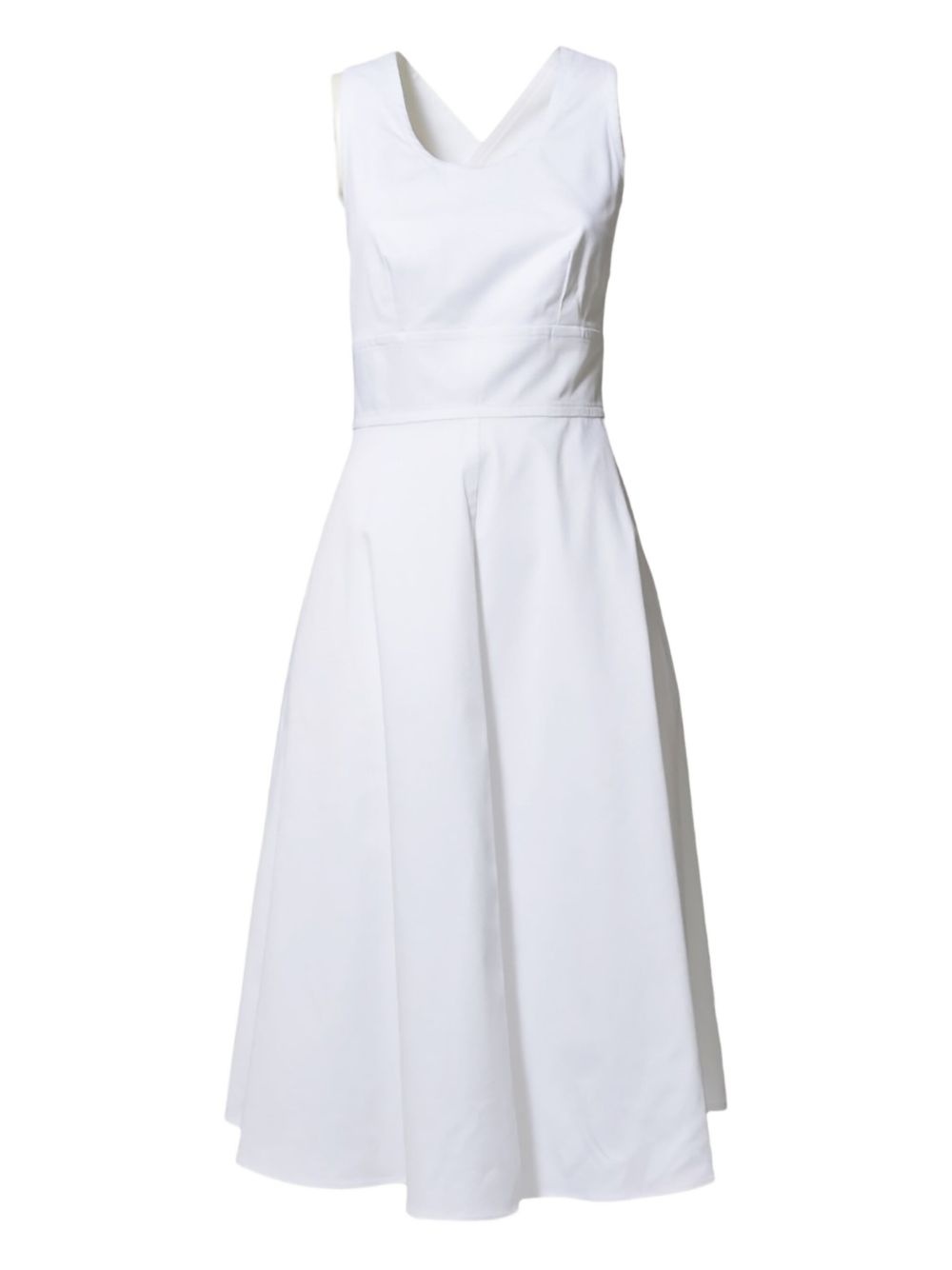 sleeveless flared dress Highlights - White - Cross-back straps - Fluted detailing - Fitted bodice - Flared skirt Imported Composition Cotton 97%, Elastane 3% Washing instructions Read Manufacturer Guidelines
