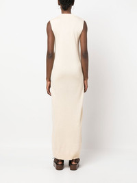 sleeveless knitted dress cream white cotton knitted construction V-neck sleeveless ribbed trim long length Made in Italy Composition Cotton 100% SIZE & FIT Model measurements Height 5 ft 10 in(1.77 m) Bust/Chest 29.92 in(76 cm) Hips 34.25 in(87 cm) Waist 23.62 in(60 cm) FittingInformation Designed for a slim fit that sits just away from the body offering a close yet comfortable fit Made with a midweight knit, this piece offers some stretch Washing instructions Hand Wash