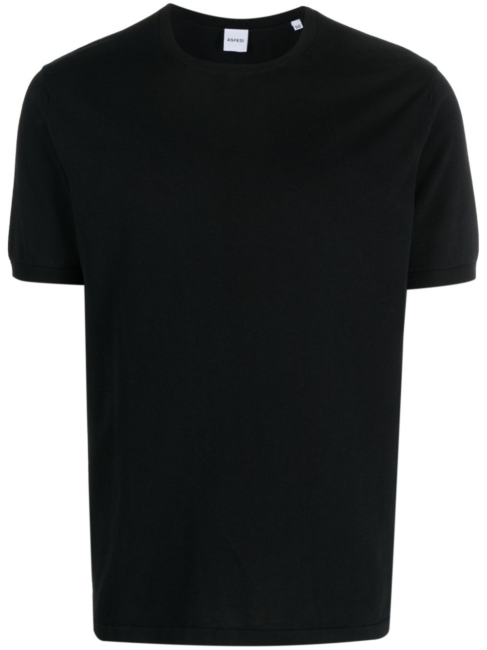 slim fit T-shirt Black cotton slim fit T-shirt from Aspesi featuring a ribbed round neck, short sleeves, ribbed cuffs and a straight hem. Made in Italy Composition Cotton 100% SIZE & FIT Model measurements Height 6 ft 1 in(1.86 m) Bust/Chest 37.4 in(95 cm) Hips 36.22 in(92 cm) Waist 29.52 in(75 cm) FittingInformation Designed for a relaxed fit, this piece allows for comfort and movement when worn Made from a midweight non-stretch fabric, this piece offers minimal elasticity when worn This piece fits true to size – take your usual size