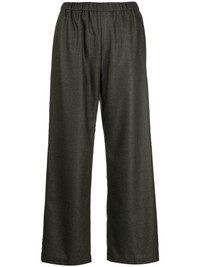 wide-leg trousers Highlights - Straight-leg wool-cashmere trousers from aspesi featuring moss green, virgin wool-cashmere blend, straight leg, high-waisted, cropped, elasticated waistband and two side welt pockets. Made in Italy Composition Virgin Wool 62%, Acrylic 19%, Polyamide 16%, Cashmere 3% SIZE & FIT Model measurements Height 5 ft 9 in(1.75 m) Bust/Chest 32.67 in(83 cm) Hips 36.22 in(92 cm) Waist 24.8 in(63 cm) FittingInformation This piece fits true to size. We recommend you get your regular size Designed to be fitted at the waist and hips, loose over the leg Made with a mid-weight non-stretch fabric