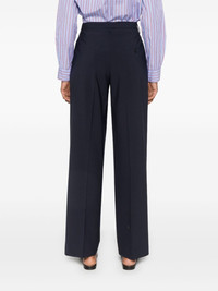 tailored trousers Highlights - Navy blue - Interlock weave - Tailored design - Front button and zip fastening - Belt loops - Pleat detailing - Two side slit pockets - Rear button-fastening pocket - Straight leg Imported Composition Polyester 53%, Virgin Wool 43%, Elastane 4% SIZE & FIT Model measurements Height 5 ft 11 in(1.8 m) Bust/Chest 31.49 in(80 cm) Hips 36.61 in(93 cm) Waist 24.4 in(62 cm) FittingInformation Designed with a wide-leg cut, these trousers allow for a close fit at the waist and offer a loose and roomy fit over the leg Made from a midweight non-stretch fabric, this piece offers minimal elasticity when worn