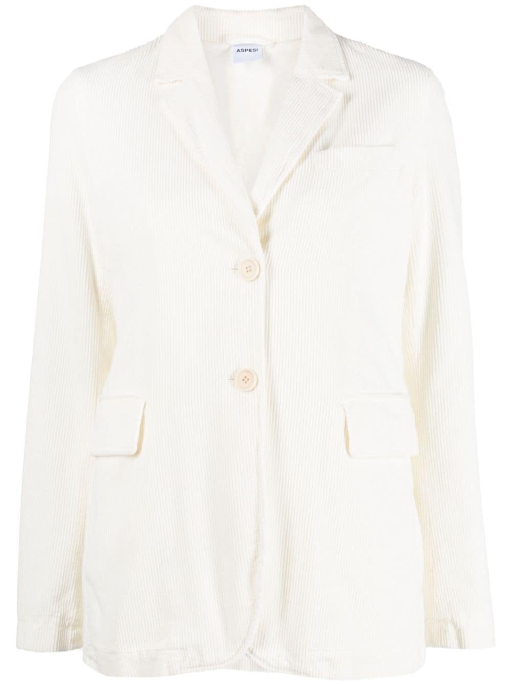 three-pocket corduroy blazer Highlights - White - Corduroy - Notched lapels - Front button fastening - Color-coordinating buttons - Chest patch pocket - Two front flap pockets - Long sleeves - Rear slit - Curved front hem - Straight rear hem Made in Italy Composition Lining: Cotton 100%, Polyester 100% Outer: Cotton 100% SIZE & FIT Model measurements Height 5 ft 10 in(1.77 m) Bust/Chest 31.88 in(81 cm) Hips 36.22 in(92 cm) Waist 24.01 in(61 cm) FittingInformation Designed for a slim fit that sits just away from the body offering a close yet comfortable fit Made from a midweight non-stretch fabric This piece fits true to size – take your usual size Washing instructions Machine Wash