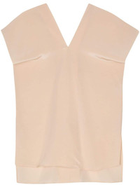 V-neck crepe silk blouse Highlights - Blush beige - Silk - Crepe cady texture - V-neck to the front and rear - Batwing short sleeves - Side slits - Unlined - High-low hem Made in Italy Composition Silk 100%