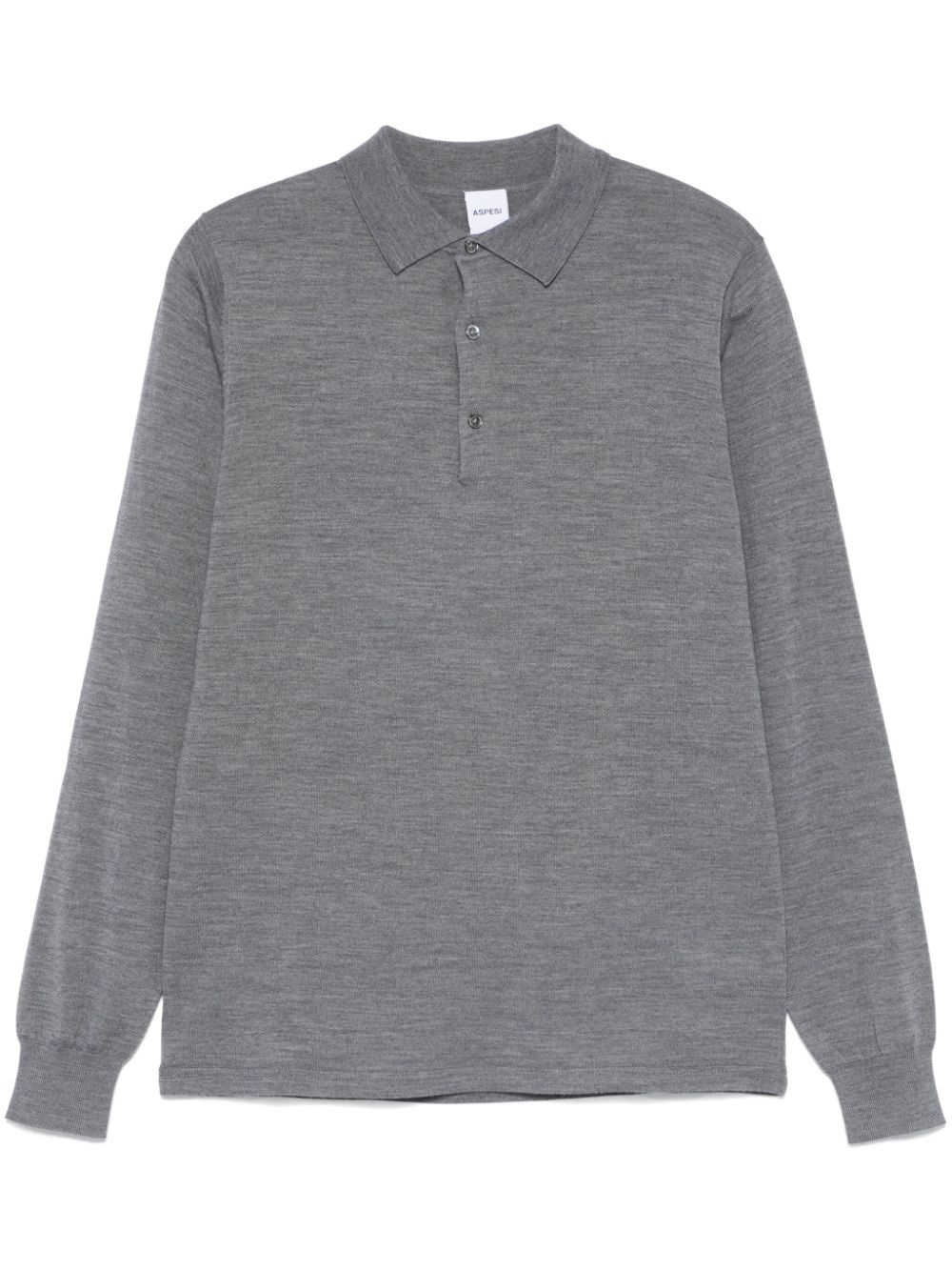 virgin wool polo shirt Highlights - Slate grey - Virgin wool - Fine knit - Melange effect - Front button placket - Polo collar - Long sleeves - Straight hem Imported Composition Virgin Wool 100% Washing instructions Hand Wash