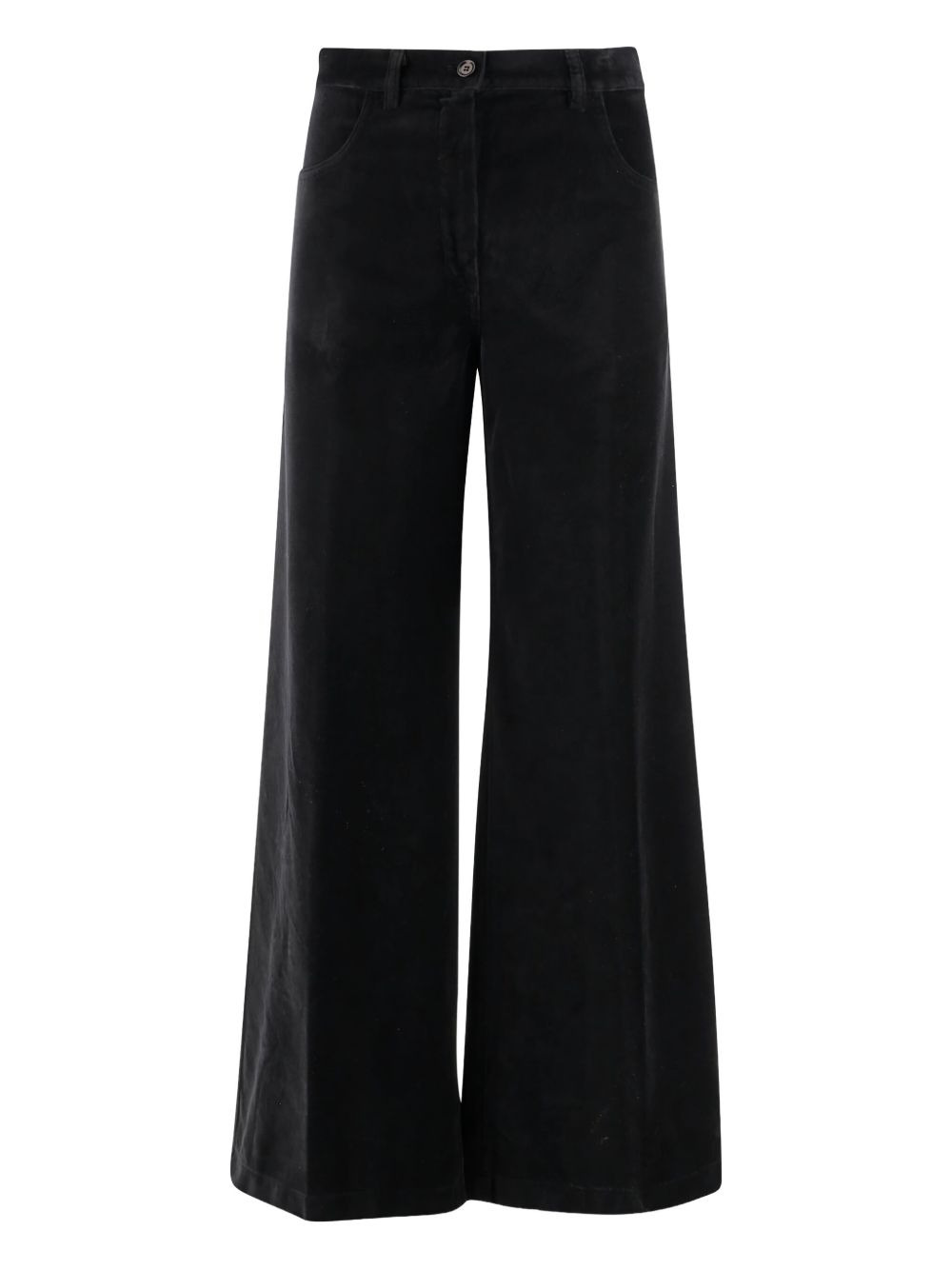 wide-leg trousers Highlights - Black - Textured panel - Belt loops - Two diagonal pockets to the sides - Button fly - High waist Made in Italy Composition Cotton 100% Washing instructions Read Manufacturer Guidelines