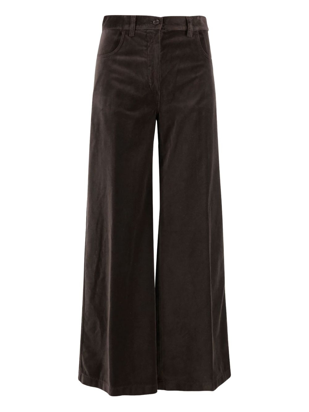 wide-leg trousers Highlights - Brown - Textured panel - Wide leg - Two diagonal pockets to the sides - Button fly - Two rear patch pockets Made in Italy Composition Cotton 100% Washing instructions Read Manufacturer Guidelines