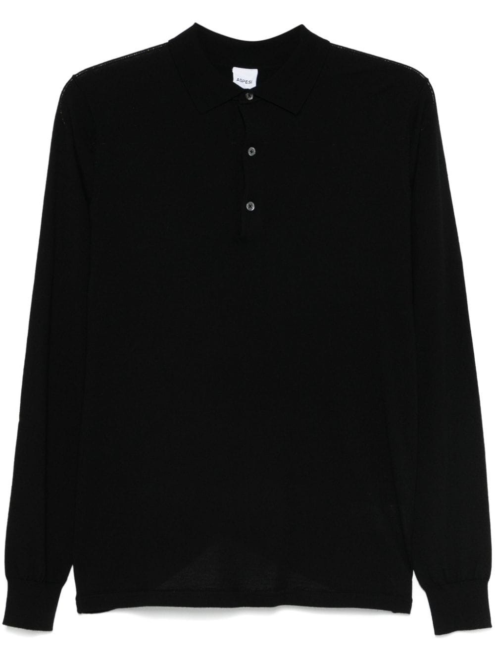 wool polo shirt Highlights - Black - Virgin wool - Fine knit - Short front button fastening - Polo collar - Long sleeves - Straight hem Imported Composition Virgin Wool 100% SIZE & FIT Model measurements Height 6 ft 1 in(1.85 m) Bust/Chest 35.82 in(91 cm) Hips 37.79 in(96 cm) Waist 29.13 in(74 cm) FittingInformation Designed for a relaxed fit, this polo shirt offers comfort and movement Made with a midweight knit, this piece offers some stretch