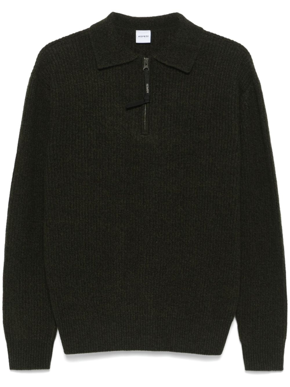 wool sweater Highlights - Olive green - Wool - Ribbed knit - Melange effect - Half front zip fastening - Polo collar - Long sleeves - Ribbed cuffs and hem Imported Composition Wool 100% SIZE & FIT Model measurements Height 6 ft 1 in(1.85 m) Bust/Chest 35.82 in(91 cm) Hips 37.79 in(96 cm) Waist 29.13 in(74 cm) FittingInformation Designed for a relaxed fit, this piece allows for comfort and movement when worn The ribbed hem offers a close, comfortable fit Made with a midweight knit, this piece offers some stretch