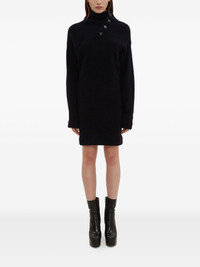 asymmetrical funnel-neck sweater dress Highlights - Navy blue - Asymmetrical funnel neck - Button fastening - Raglan sleeves - Long sleeves Made in Italy Composition Wool 58%, Polyester 42% Washing instructions Read Manufacturer Guidelines