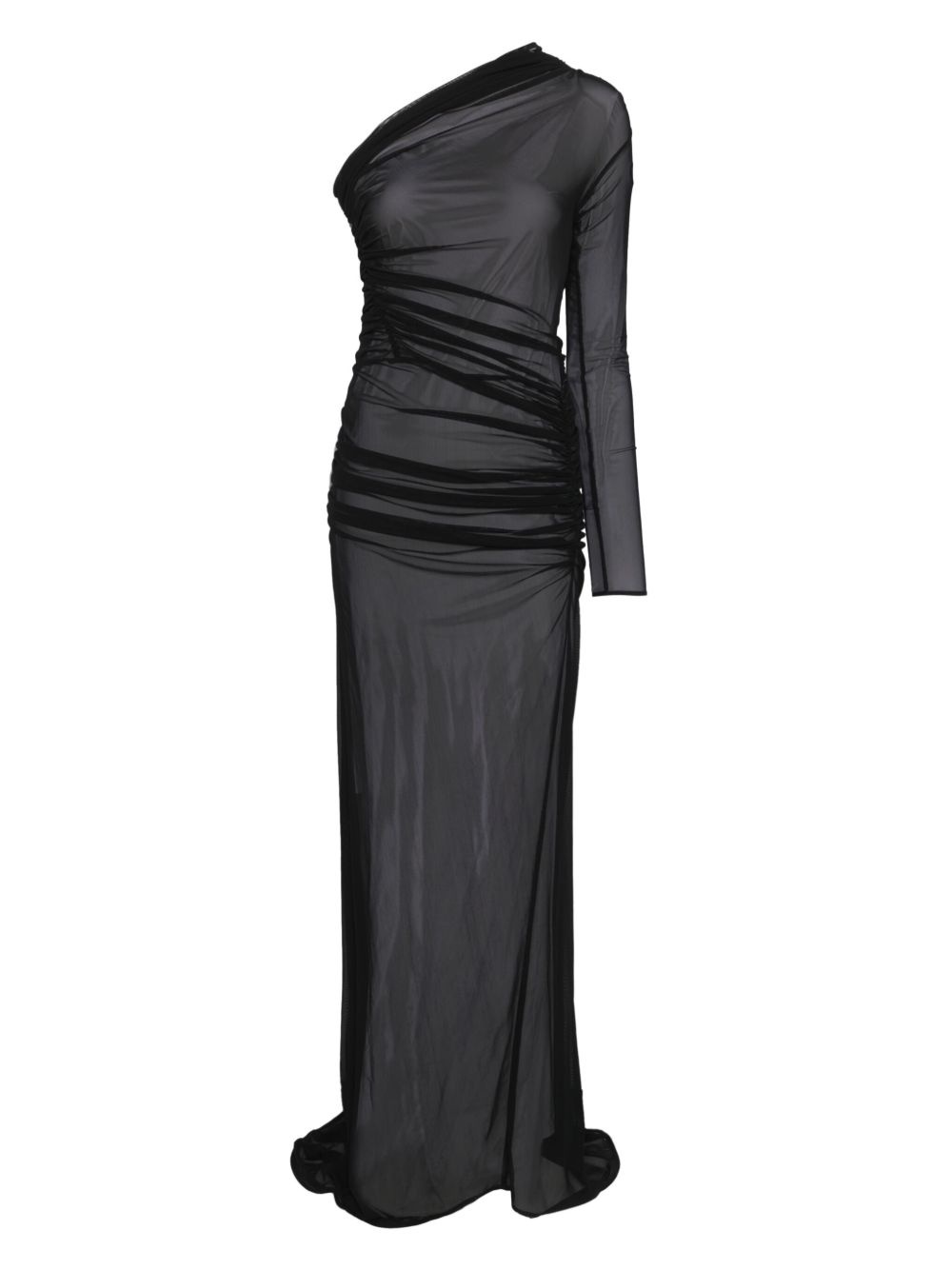 one-shoulder maxi dress Highlights - Black - Asymmetric neck - Single long sleeve - Ruched detailing - Draped detailing Made in France Composition Polyamide 74%, Elastane 26%