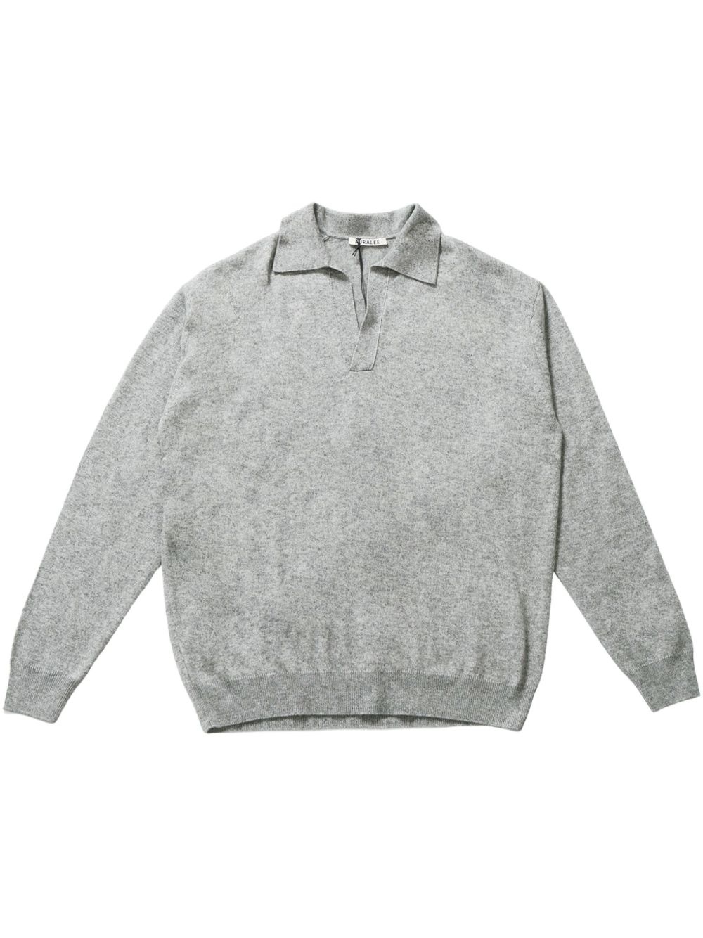fine-knit polo-collar sweater Highlights - Medium grey - V-neck - Drop shoulder - Long sleeves - Ribbed trim Imported Composition Cashmere 50%, Silk 50%