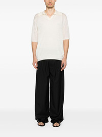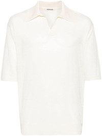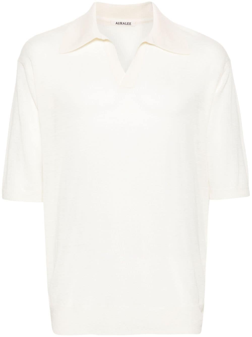 melange wool-blend polo shirt Highlights - Ivory white - Wool-silk blend - Melange effect - Polo collar - V-neck - Short sleeves - Ribbed cuffs and hem - Straight hem Imported Composition Wool 85%, Silk 15% SIZE & FIT Model measurements Height 6 ft 1 in(1.86 m) Bust/Chest 37.4 in(95 cm) Hips 36.22 in(92 cm) Waist 29.52 in(75 cm) Measurement CHEST 43.3 in(110 cm) SLEEVE LENGTH 20.47 in(52 cm) LENGTH 25.59 in(65 cm) Shoulder Width 18.89 in(48 cm) FittingInformation Designed for a relaxed fit, this polo shirt offers comfort and movement Made with a lightweight knit, this piece offers some stretch This piece fits true to size – take your usual size
