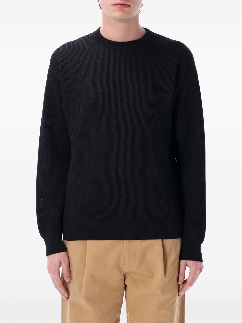 ribbed sweater Highlights - Black - Crew neck - Drop shoulder - Long sleeves - Ribbed cuffs and hem Imported Composition Cotton 100%
