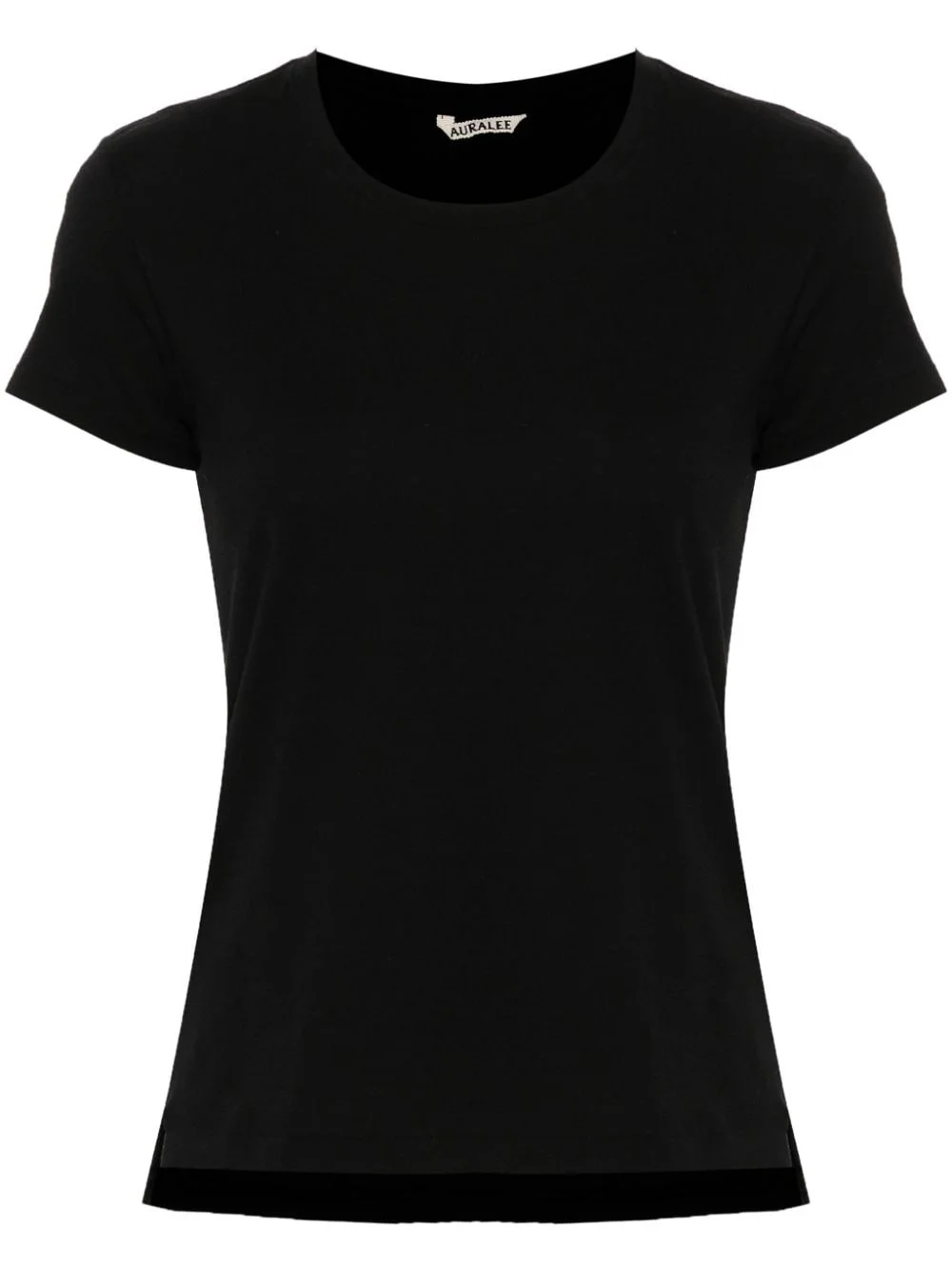 short-sleeve cotton T-shirt Highlights - Black - Cotton - Jersey texture - Crew neck - Short sleeves - Short side slits - Straight hem Imported Composition Cotton 100% Washing instructions Dry Clean Only